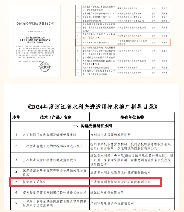 喜報 | 我院三項(xiàng)成果先后入選《2024年度寧波市優(yōu)質(zhì)產(chǎn)品推薦目錄》《2024年度浙江省水利先進(jìn)適用技術(shù)推廣指導(dǎo)目錄》