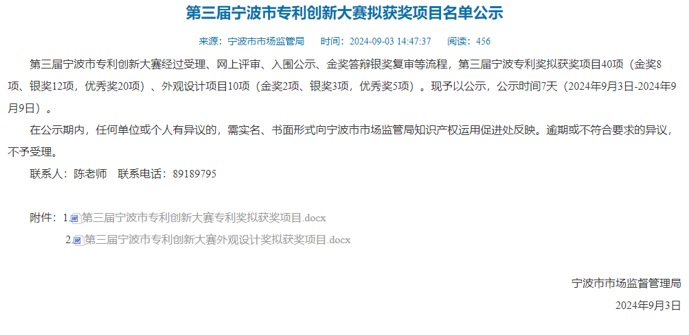 喜訊 | 我院一項(xiàng)專利發(fā)明榮獲第三屆寧波市專利創(chuàng)新大賽專利優(yōu)秀獎