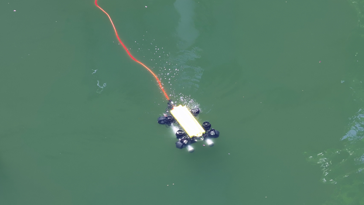 “水下監(jiān)管員”水下機(jī)器人由岸基控制臺、水下本體、通訊和供電系統(tǒng)、輔助工具、傳感器和用戶模塊組成。水下機(jī)器人不僅能夠通過高清影像實(shí)時檢測水質(zhì)指標(biāo)、排查壩體閘門隱患,徹底解決人工巡檢的盲區(qū)難題;還能如“清道夫”般穿梭于壩體之間,清理水下雜物淤積,提升水庫蓄水調(diào)節(jié)能力。此外,還能協(xié)助搜索落水物體或人員,為經(jīng)濟(jì)救援提供支撐。