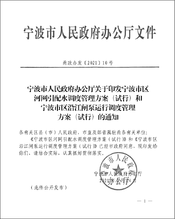 鑒于姚江二通道(慈江)工程的復(fù)雜性和特殊性,以及上下游調(diào)度的敏感性,為科學(xué)指導(dǎo)工程建成后的調(diào)度運(yùn)行管理,研究提出的《姚江二通道(慈江)工程閘泵試運(yùn)行調(diào)度規(guī)則》,于2021年2月24日經(jīng)寧波市人民政府辦公廳公開發(fā)布,成果應(yīng)用于2021年7月“煙花”臺風(fēng)防御當(dāng)中。