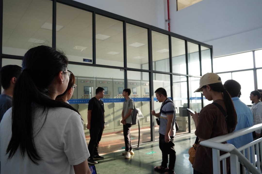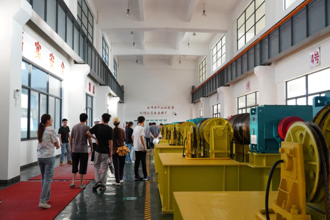 最后,研學(xué)隊(duì)伍來(lái)到北堤樞紐參觀。該工程榮獲中國(guó)建筑行業(yè)工程質(zhì)量的最高榮譽(yù)獎(jiǎng)——2020-2021年度第一批中國(guó)建設(shè)工程魯班獎(jiǎng)。胡經(jīng)理帶領(lǐng)研學(xué)隊(duì)伍依次進(jìn)入啟閉機(jī)房、觀景臺(tái)、控制室等處,現(xiàn)場(chǎng)講解工程設(shè)計(jì)思路、建造工藝和管理要點(diǎn)。