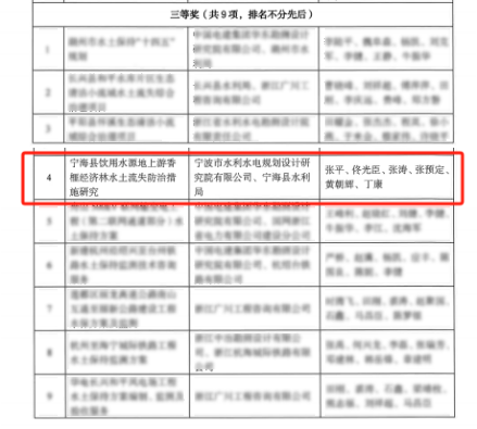 近日,浙江省水土保持學(xué)會(huì)第三屆優(yōu)秀設(shè)計(jì)評(píng)選獲獎(jiǎng)名單出爐,15個(gè)獲獎(jiǎng)工程中,我院成功鎖定一席!此次我院受寧??h水利局委托開展實(shí)施的寧??h飲用水源地上游香榧經(jīng)濟(jì)林水土流失防治措施研究榮獲三等獎(jiǎng)。該獎(jiǎng)項(xiàng)由浙江省水土保持學(xué)會(huì)設(shè)立,每?jī)赡暝u(píng)審一次,通過對(duì)水土保持規(guī)劃設(shè)計(jì)領(lǐng)域中取得優(yōu)異成績(jī)的集體和個(gè)人進(jìn)行表彰,從而推動(dòng)全省水土保持行業(yè)的發(fā)展。